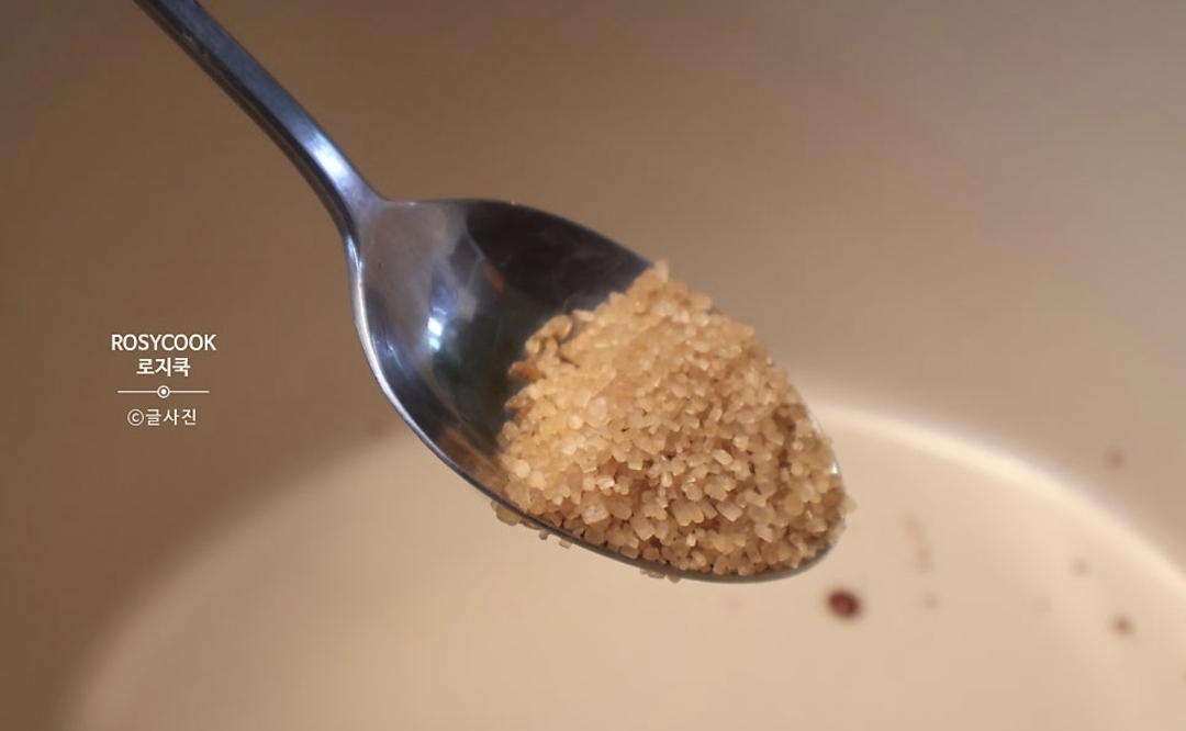 5. 소스를 끓여줄 겁니다. 진간장 2 큰 술, 설탕 1/3 큰 술을 넣어줍니다.