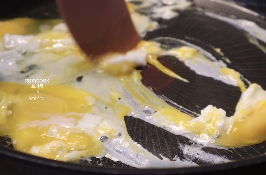 3. 식용유를 팬에 둘러준 후, 살살 저어가며 계란 스크램블을 만들어줍니다.