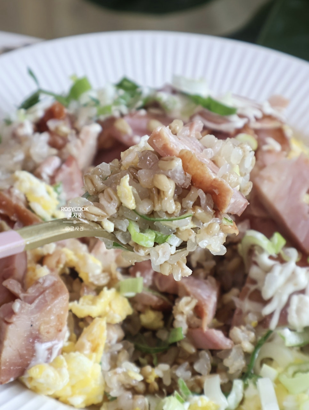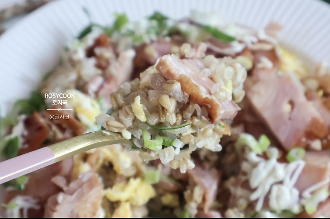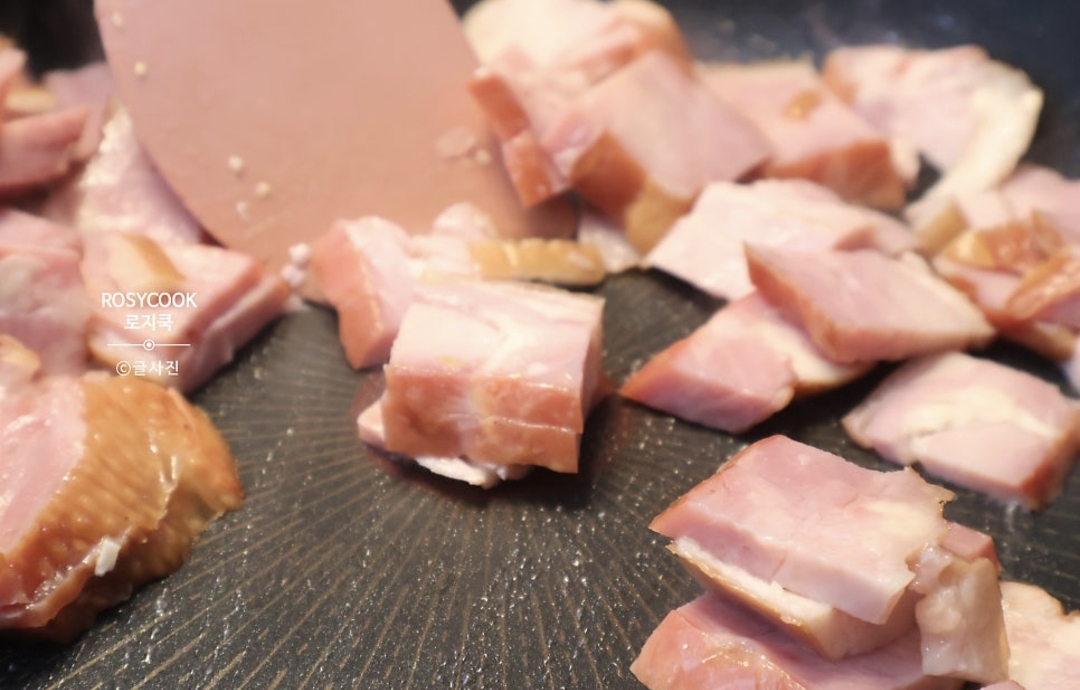 4. 썰어둔 훈제 치킨을 살짝 볶아줍니다.