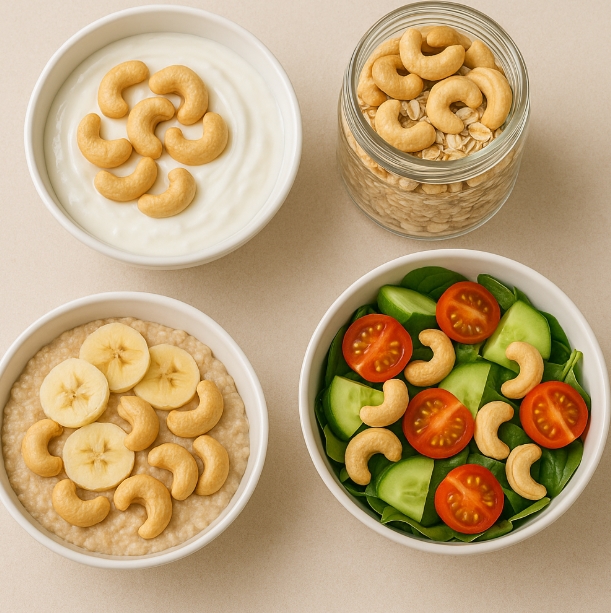 특히 요거트나 샐러드, 오트밀에 캐슈넛을 살짝 곁들이면 식감도 좋아지고 포만감도 오래가서 다이어트 간식으로도 아주 좋아요.