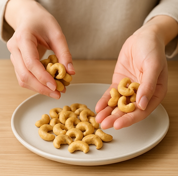 제가 매일 아침 먹는 캐슈넛 양은 한 줌(약 20~30g) 정도인데요, 이게 딱 하루 권장량이라고 하더라고요. 캐슈넛은 칼로리가 꽤 높은 편이라 많이 먹으면 오히려 체중 증가로 이어질 수 있대요. 한 줌이면 약 15~18알 정도 되니까,