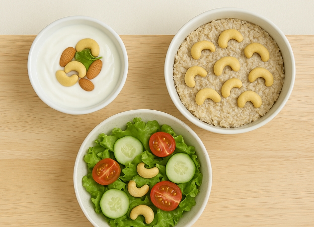 특히 요거트나 샐러드, 오트밀에 캐슈넛을 살짝 곁들이면 식감도 좋아지고 포만감도 오래가서 다이어트 간식으로도 아주 좋아요.