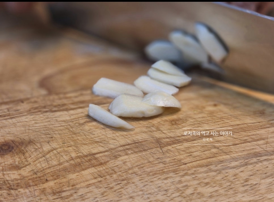 5. 마늘 2쪽을 얇게 썰어줍니다.