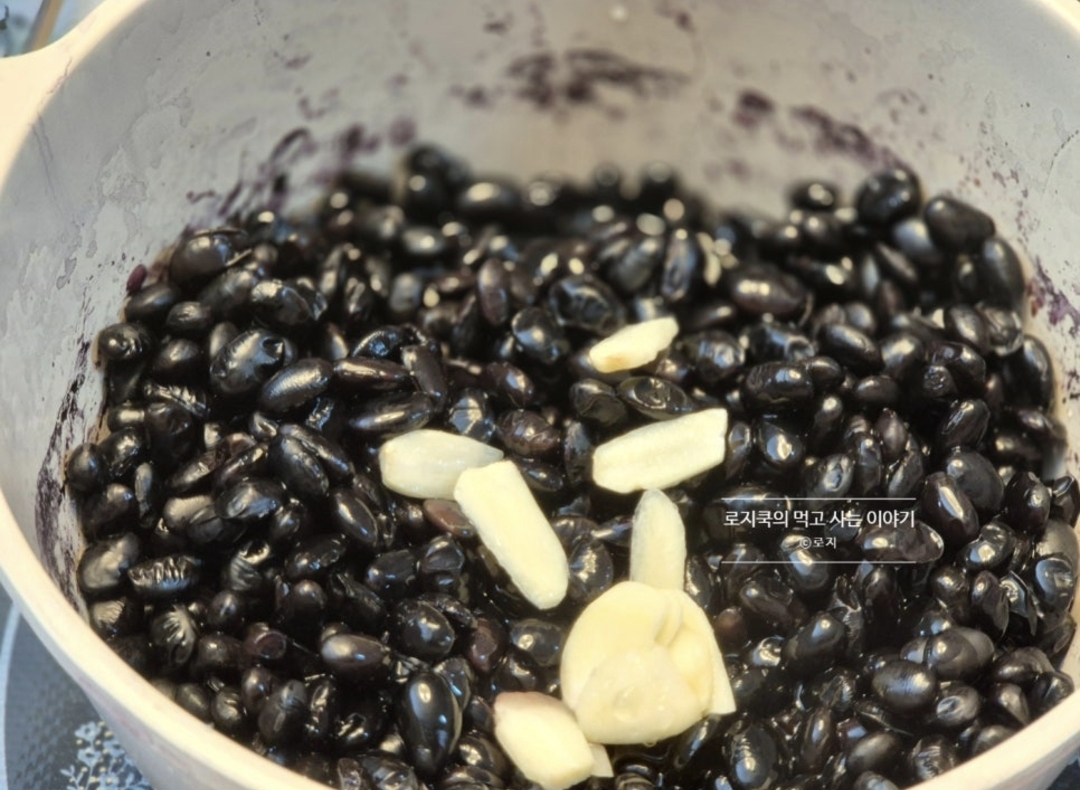 6. 물이 반쯤 남았다면, 마늘을 넣어줍니다.
