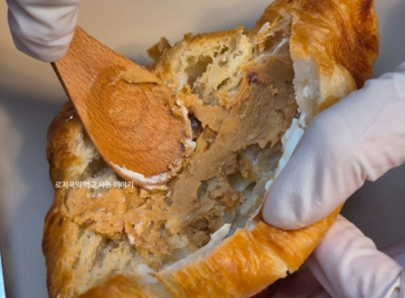 샌드위치 빵으로 쓰기 좋은 크로와상이니 그냥 드시지 마시고 맛있게 크로와상 샌드위치 만들기 해보시길 바랍니다. 버터의 풍미와 피넛버터가 잘 어우러지는 맛입니다.