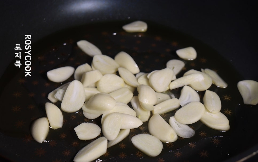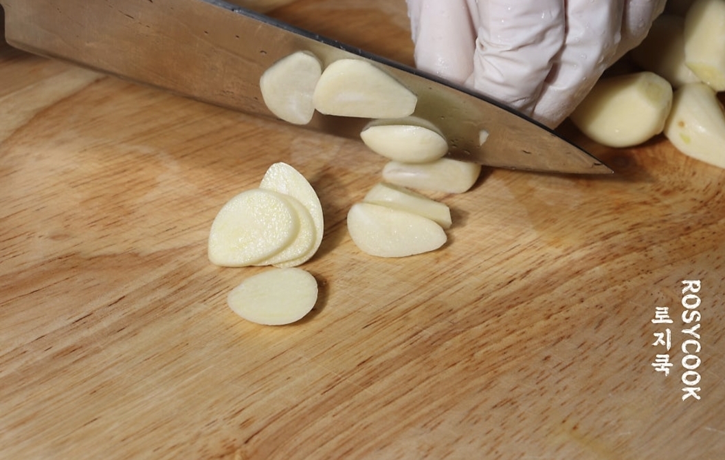 2. 마늘 15쪽을 얇게 썰어줍니다.