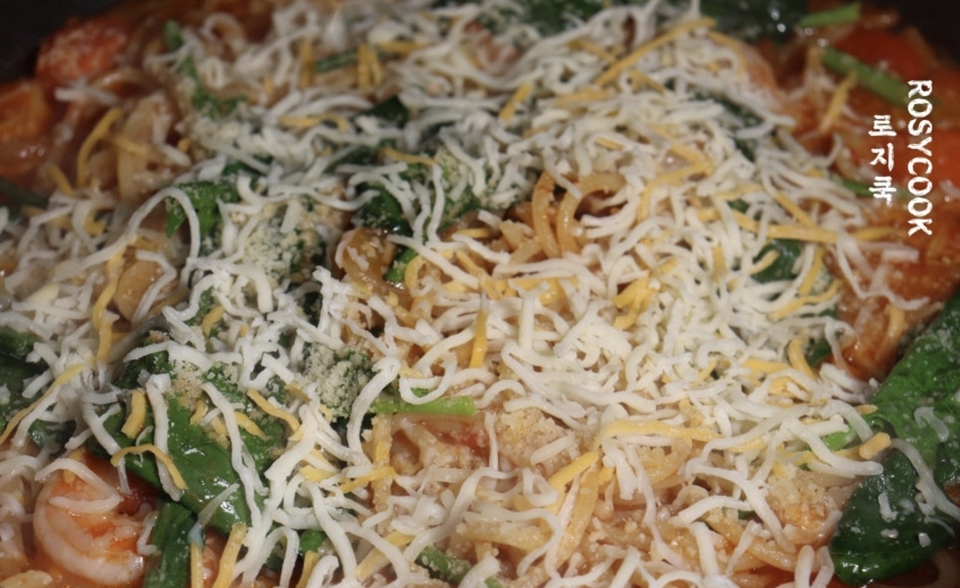 모차렐라 체더치즈를 뿌려준 후 마무리해 줍니다~