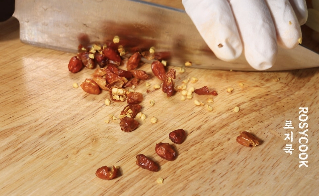 매운 걸 좋아하시는 분들은 넉넉하게 넣어주셔도 됩니다. 제가 사용한 페페론치노홀은 작은 크기라 25개 정도 사용했습니다.