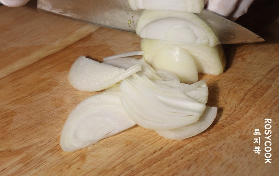 1. 양파 1/2개를 채 썰어서 준비해 줍니다.