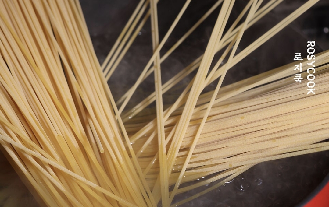 12. 물이 끓어오르면 파스타면을 넣어주고, 1인분(100g) 기준 물 1L, 소금 10g을 사용하시면 됩니다.