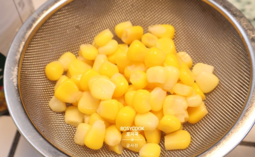 1. 캔 옥수수를 체에 걸러서 국물을 빼줍니다.