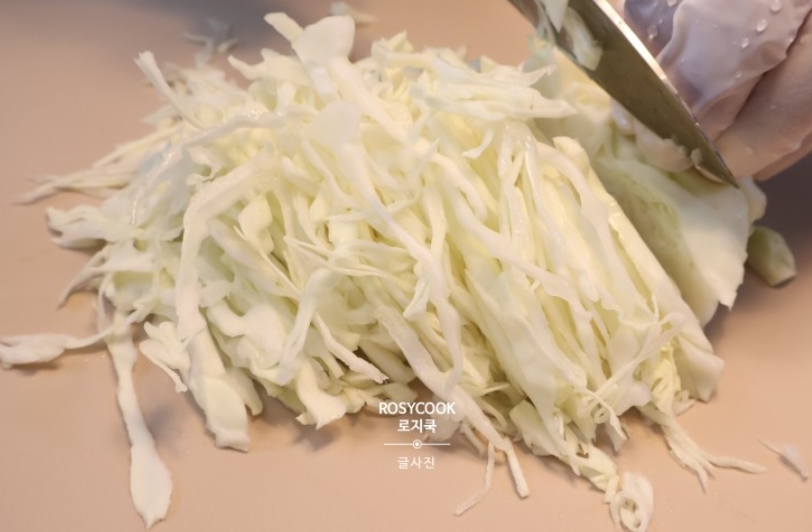 7. 양배추를 채 썰어줍니다.