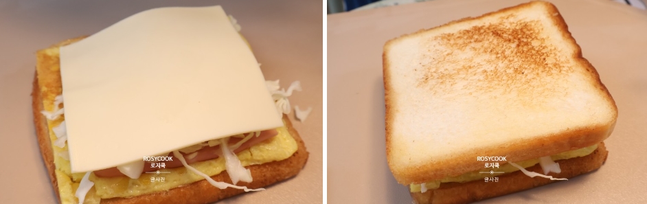 11. 슬라이스 치즈를 올리고, 구워둔 식빵으로 덮어줍니다.