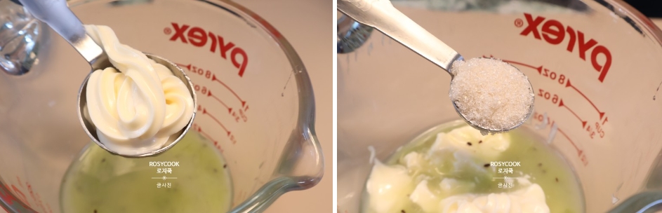 4. 키위드레싱, 레몬즙, 올리고당(or알룰로스), 마요네즈, 설탕을 넣고 잘 섞어주세요.