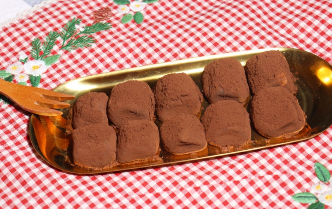 9. 먹기 좋은 크기로 썰어주고, 겉에 다시 한번 카카오 가루를 골고루 묻혀주시면 끝입니다.