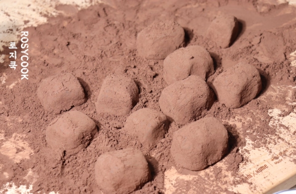 3. 연유와 카카오가루의 비율은 원하시는 식감에 따라 조절이 가능하긴 합니다. 사르륵 녹는 정도의 식감으로 조절해 봤습니다. 좀 더 단단한 식감을 원하신다면 카카오가루의 양을 늘리셔도 됩니다. 카카오가루의 양을 늘릴수록 쓴맛은 좀 더 생깁니다.