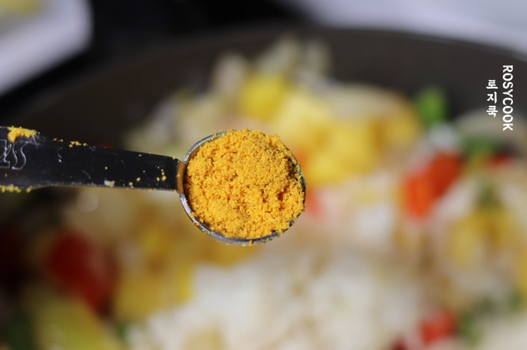 15. 카레가루 1/2티스푼을 넣어줍니다.