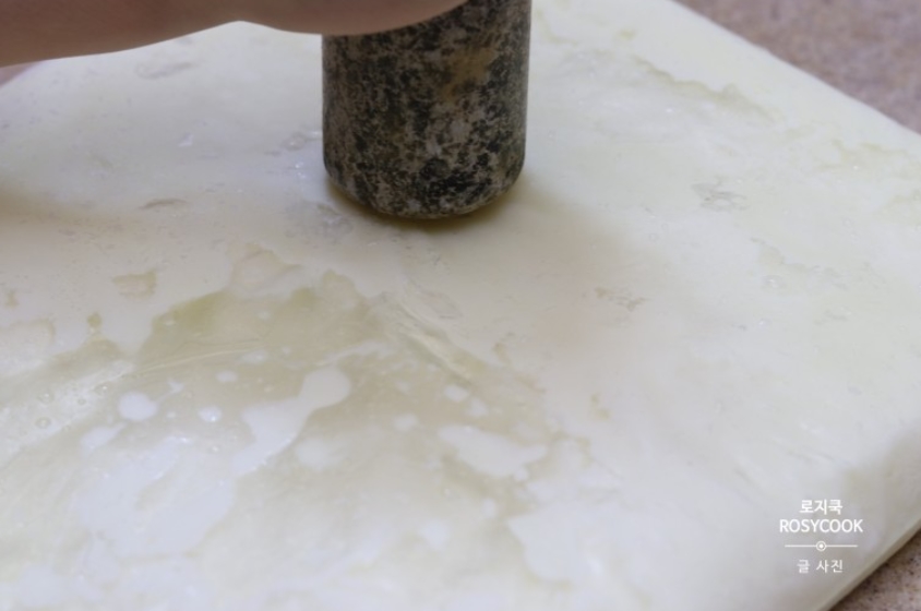 9. 인절미를 잘라서 올려줍니다. 빙수떡을 사용하셔도 되고요~