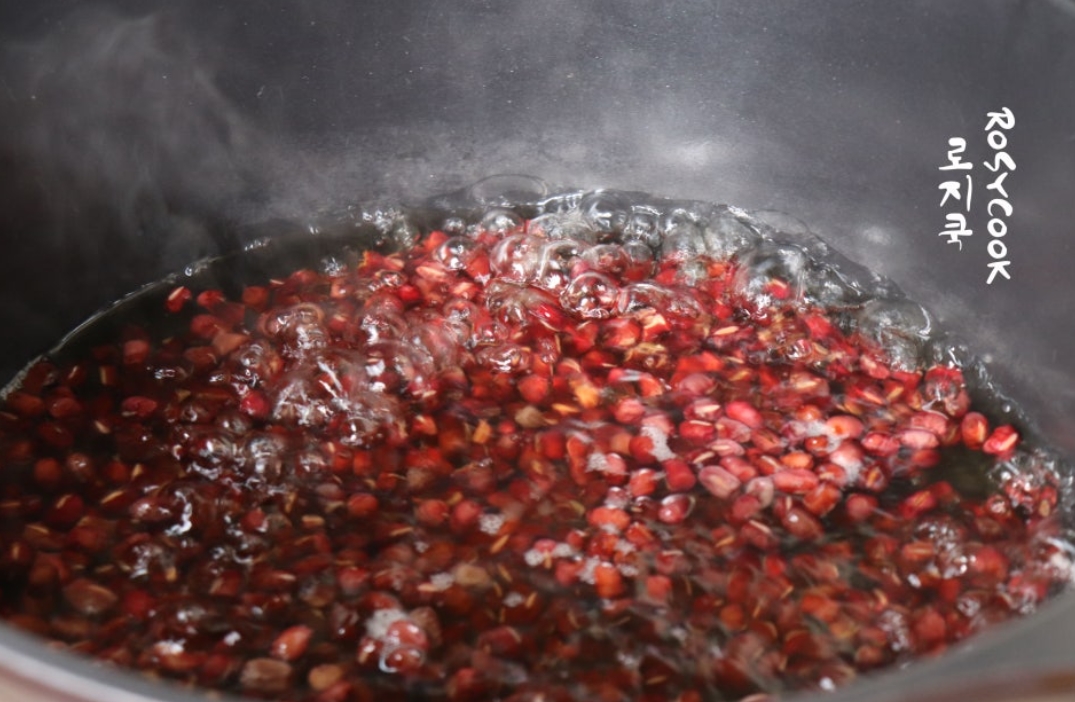 6. 이렇게 팥이 터지면서 푹 익을 때까지 뚜껑을 덮고 끓여주시면 됩니다.