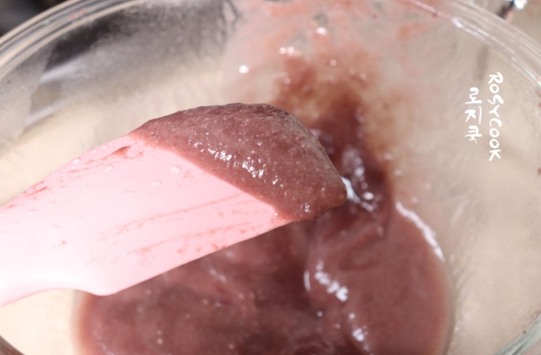 9. 이렇게 팥 껍질이 남을 때까지 걸러줍니다.