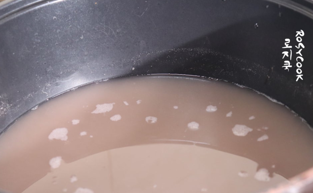 10. 걸러준 팥물을 붓고, 물 250ml를 추가합니다.