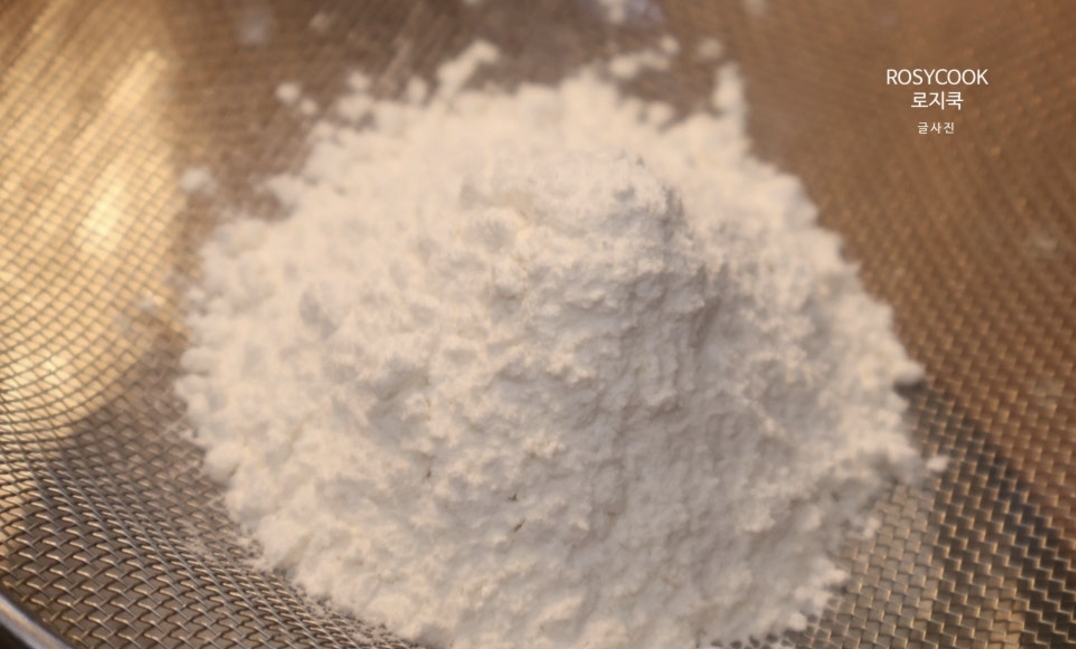 2. 밀가루를 체에 쳐서 55g 넣어줍니다.
