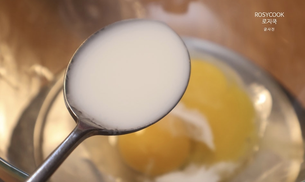 1. 노른자 3알에 레몬즙 1 큰 술, 우유 2 큰 술을 넣어줍니다. 레몬즙 대신 바닐라익스트랙을 사용하셔도 됩니다.