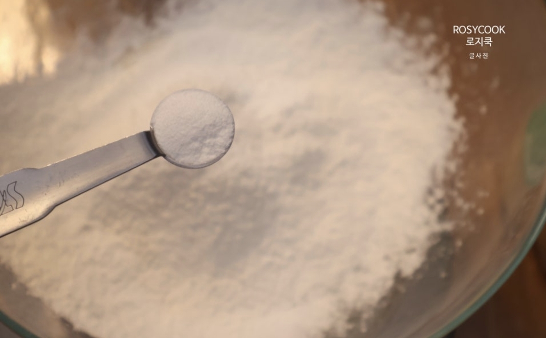 3. 베이킹파우더 1/4 티스푼을 넣어주고, 뭉치지 않도록 잘 풀어줍니다.