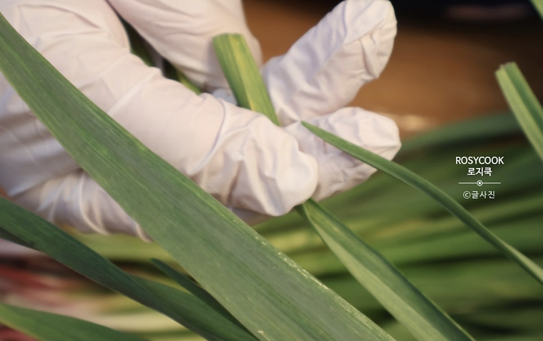 제가 사용한 풋마늘은 연해서 데치지 않고 그냥 사용했습니다. 좀 더 자란 마늘대를 사용하실 분들은 끓는 물에 소금을 살짝 넣고 데쳐서 사용하셔도 좋습니다. 데친 후 물기를 꽉 짜서 사용합니다.