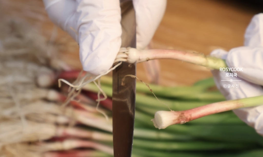 1. 풋마늘의 뿌리를 제거해 줍니다.