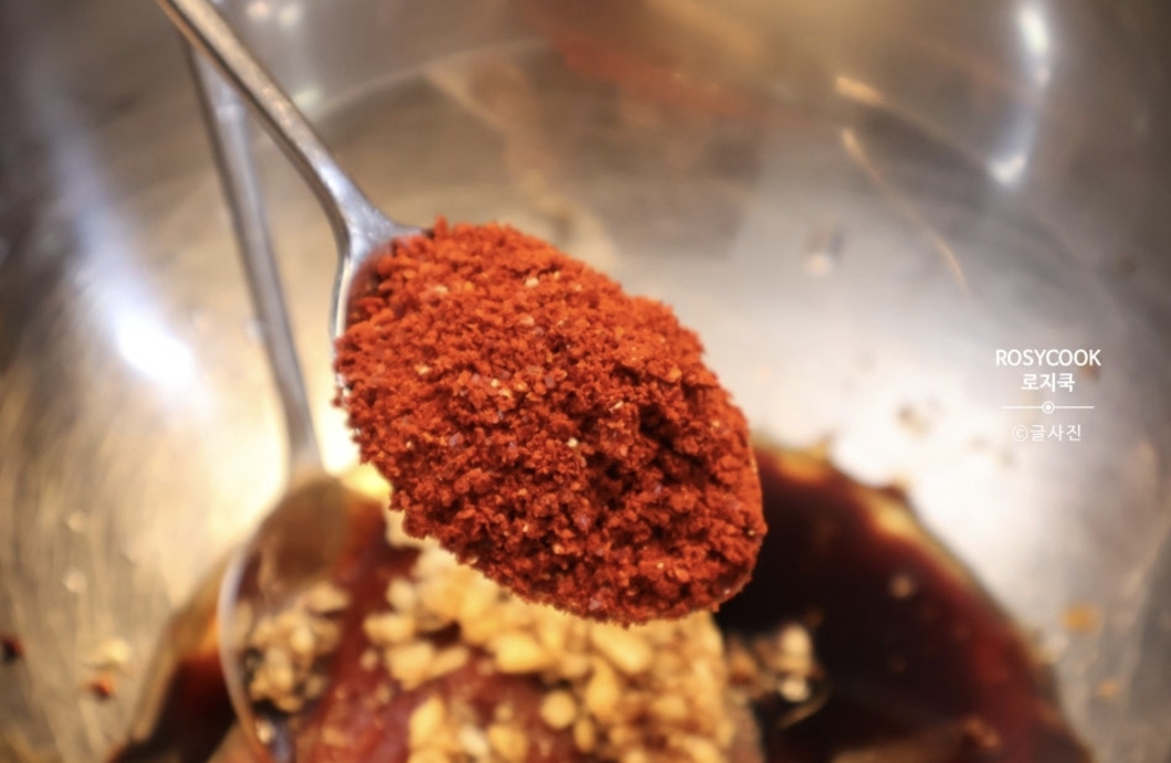 7. 고춧가루 2 큰 술을 넣어주고 잘 섞어줍니다.