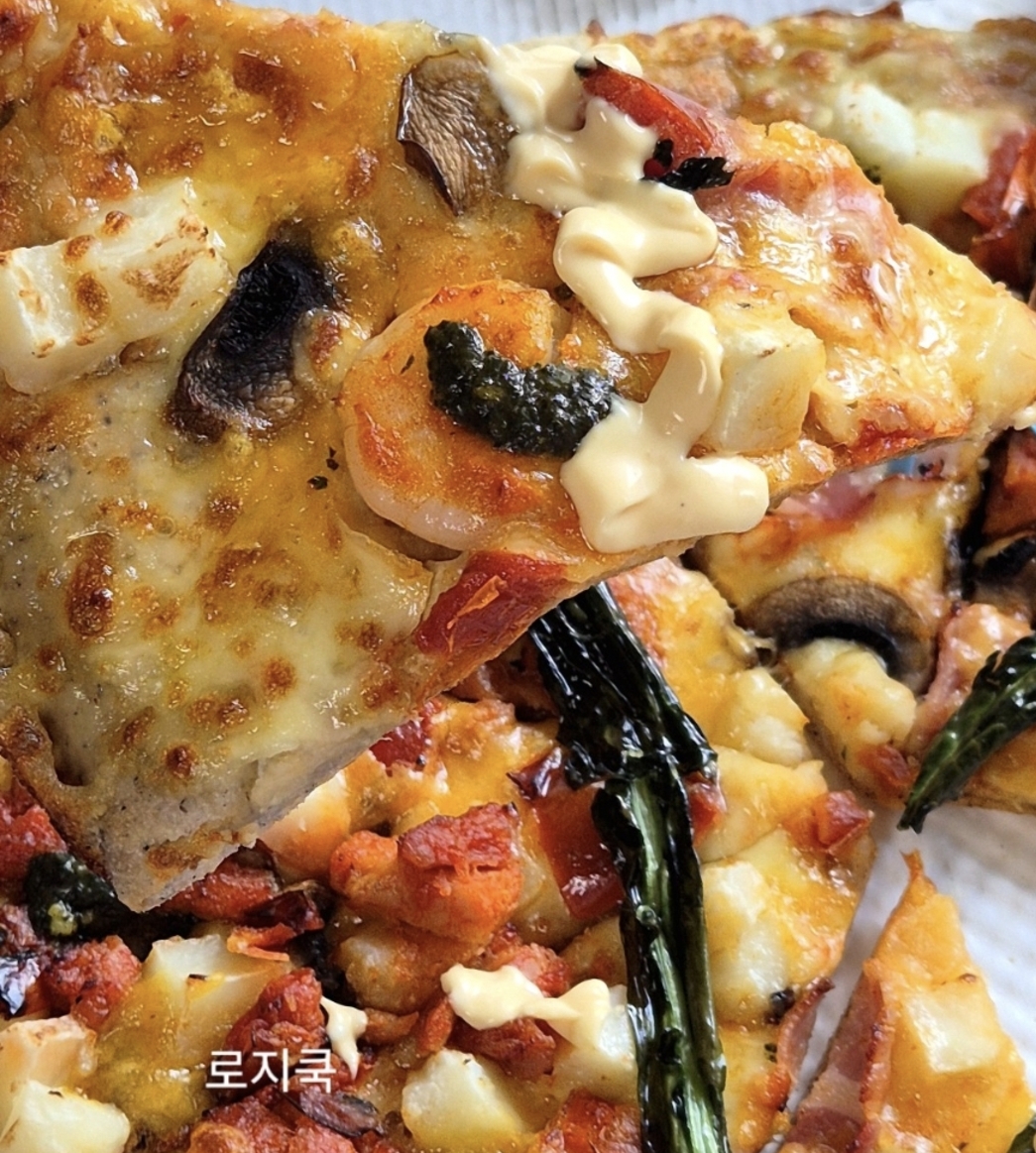 갈릭새우가 올라간 해산물 쪽은 통통한 식감이 살아 있고, 바베큐 치킨 쪽은 매콤한 맛이 확 도는 게 특징이에요.