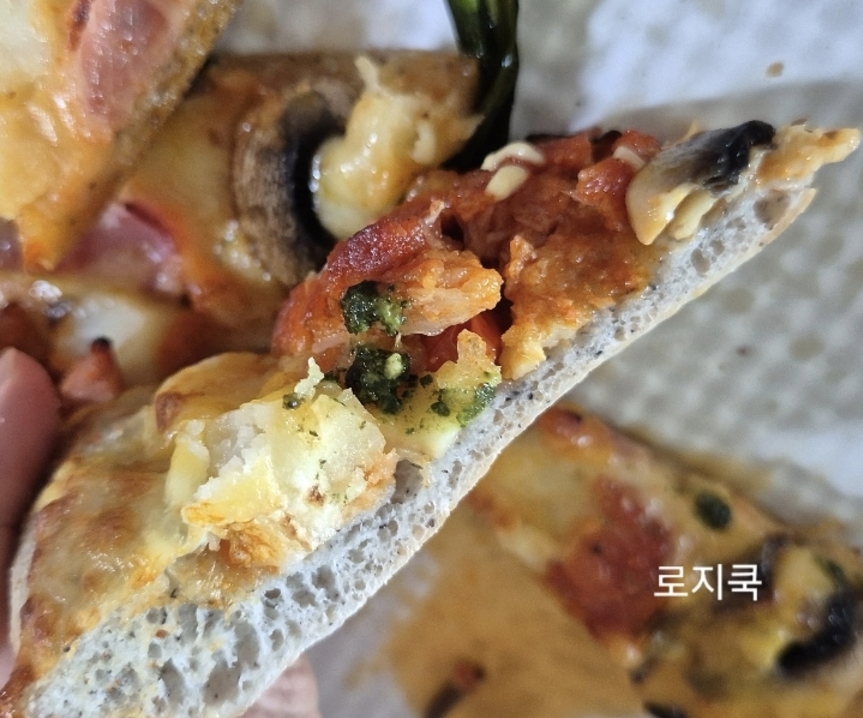 특히 썬드라이 토마토의 과즙이 퍼지면서 입 안을 산뜻하게 만들어주는 게 좋았고, 피자알볼로 특유의 쫄깃한 흑미 도우가 토핑의 맛을 더 잘 살려주더라고요.