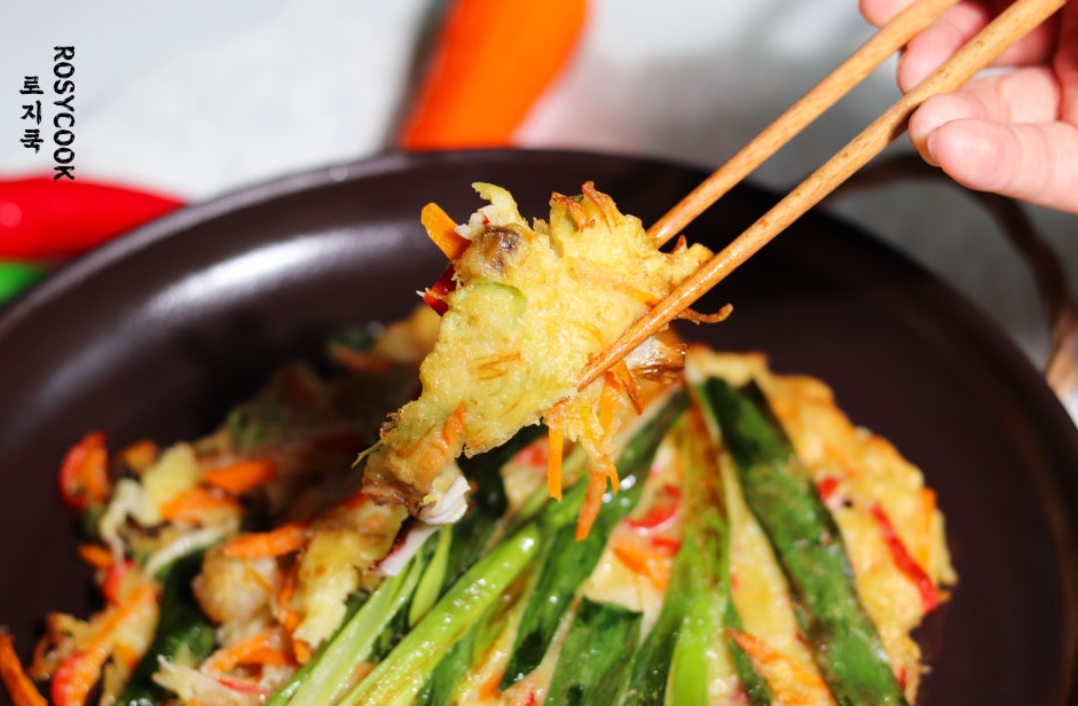 야채전처럼 담백하게 먹고 싶다면 해물을 생략해도 충분히 맛있고요, 냉장고 속 자투리 채소로 다양하게 응용도 가능하답니다.