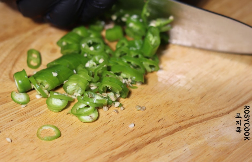 청양고추와 홍고추는 송송 썰어 매콤한 맛을 더해주고요.