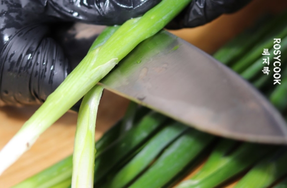 대파는 반으로 가른 뒤 3등분으로 썰어 준비합니다.