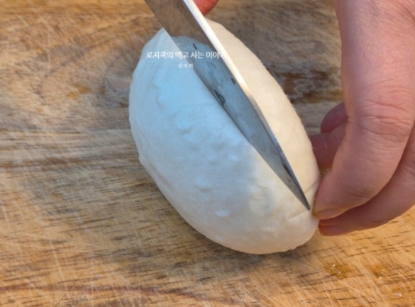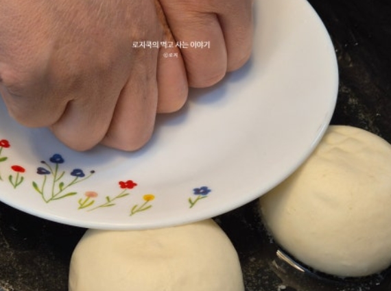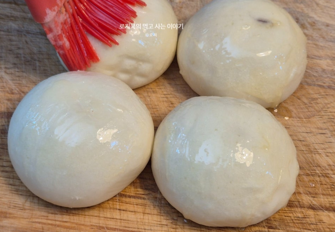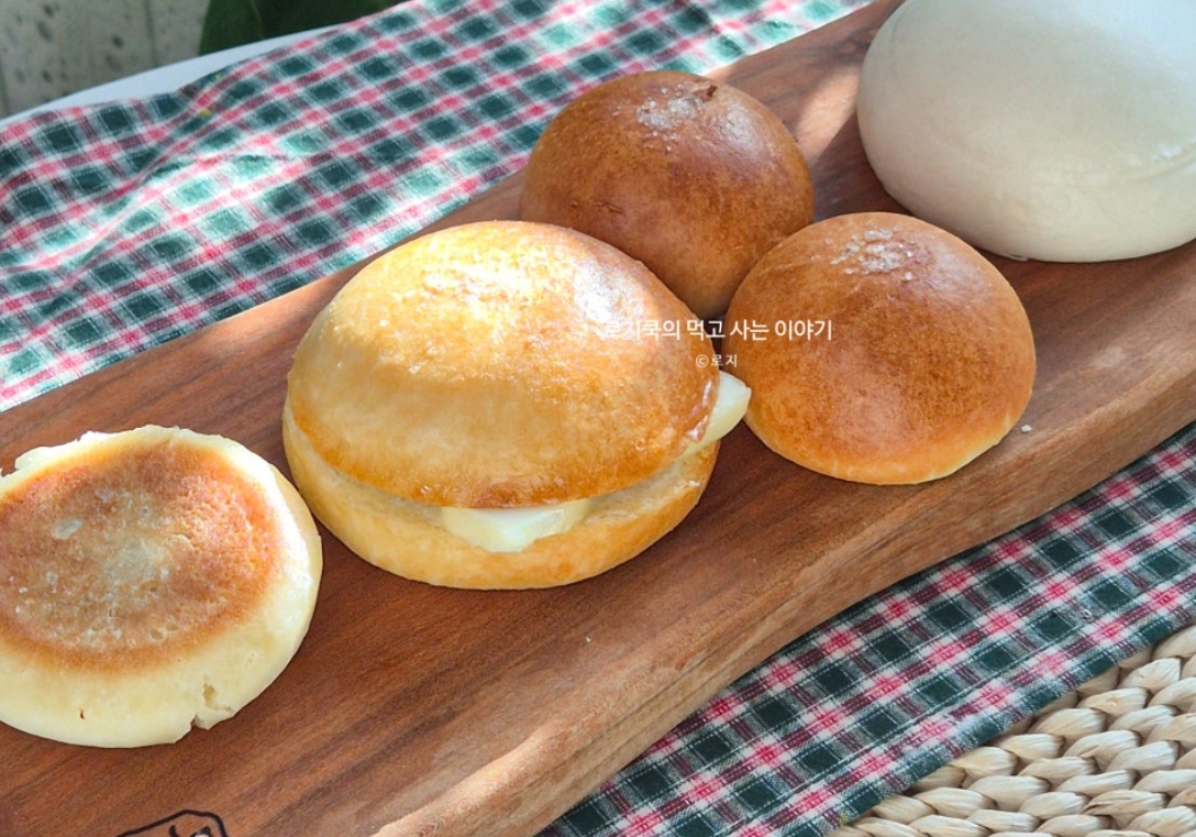 6. 앙버터로 만들 호빵은 반으로 갈라준 후, 덮어줍니다.