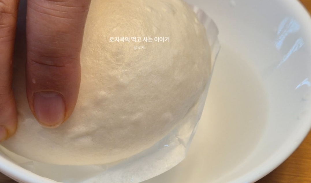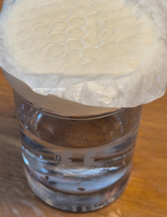 12. 호빵의 종이를 제거한 후, 테두리를 돌려가며 물에 적셔줍니다.