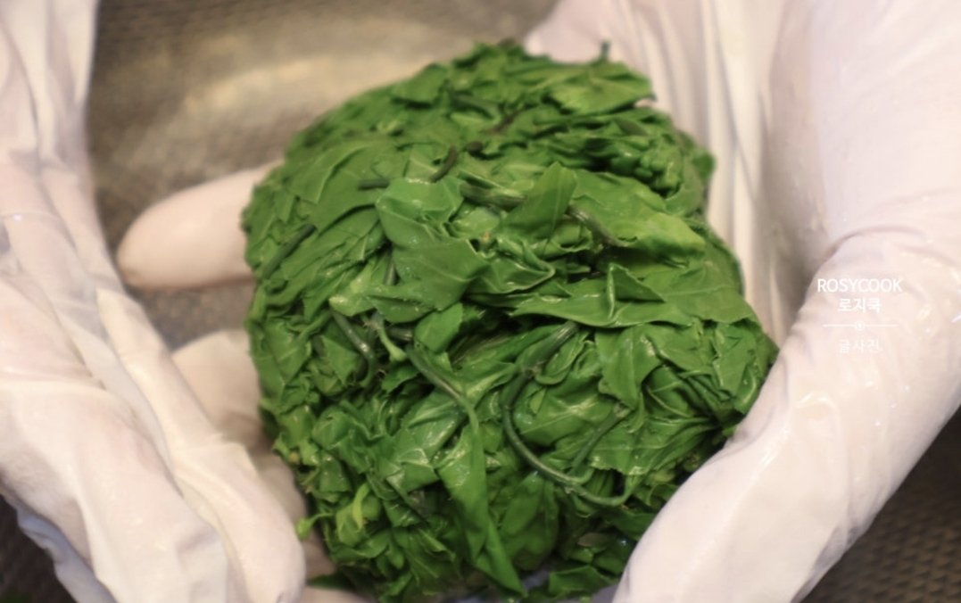 5. 홑잎나물 순을 꽉 짜서 물기를 완전히 제거해 줍니다.