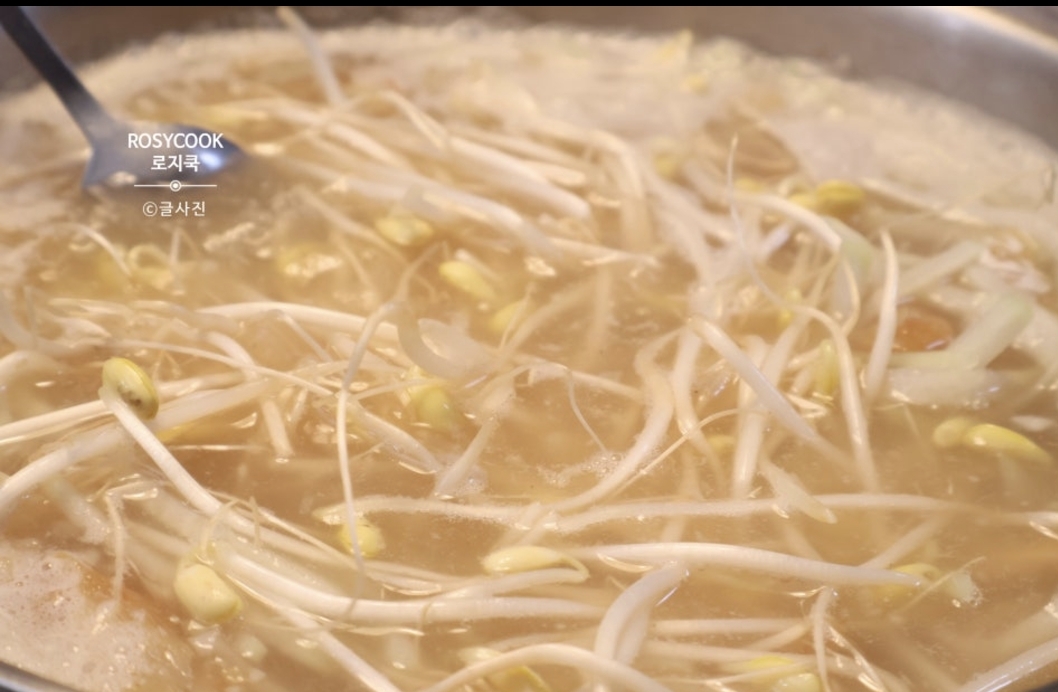 14. 다시 끓어오르면 콩나물 1.5줌을 넣어줍니다.