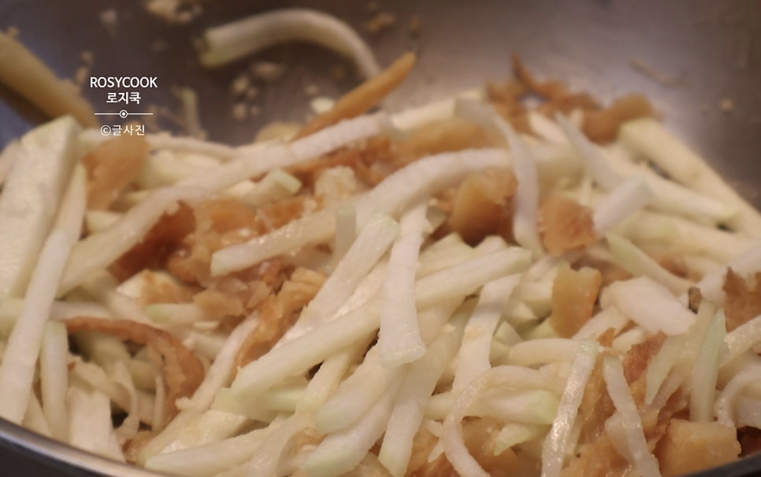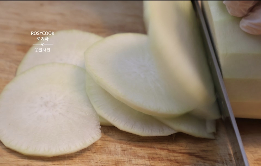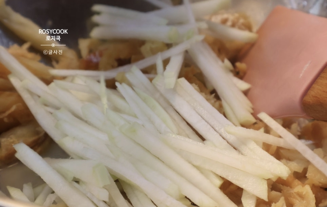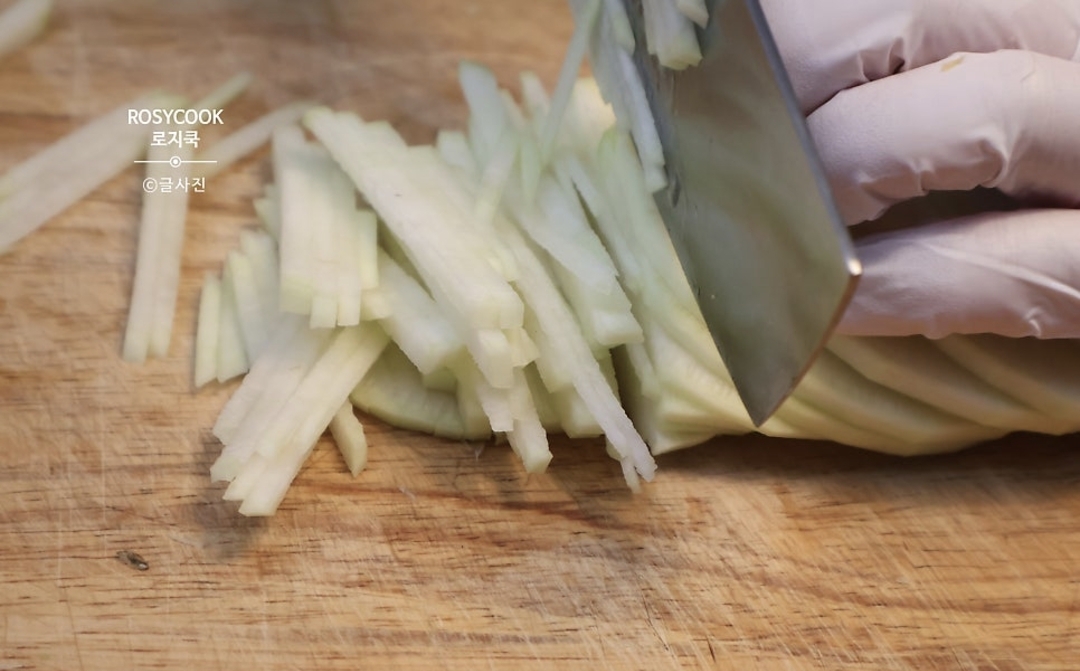 5. 무는 1줌 정도 나오게 채 썰어줍니다.