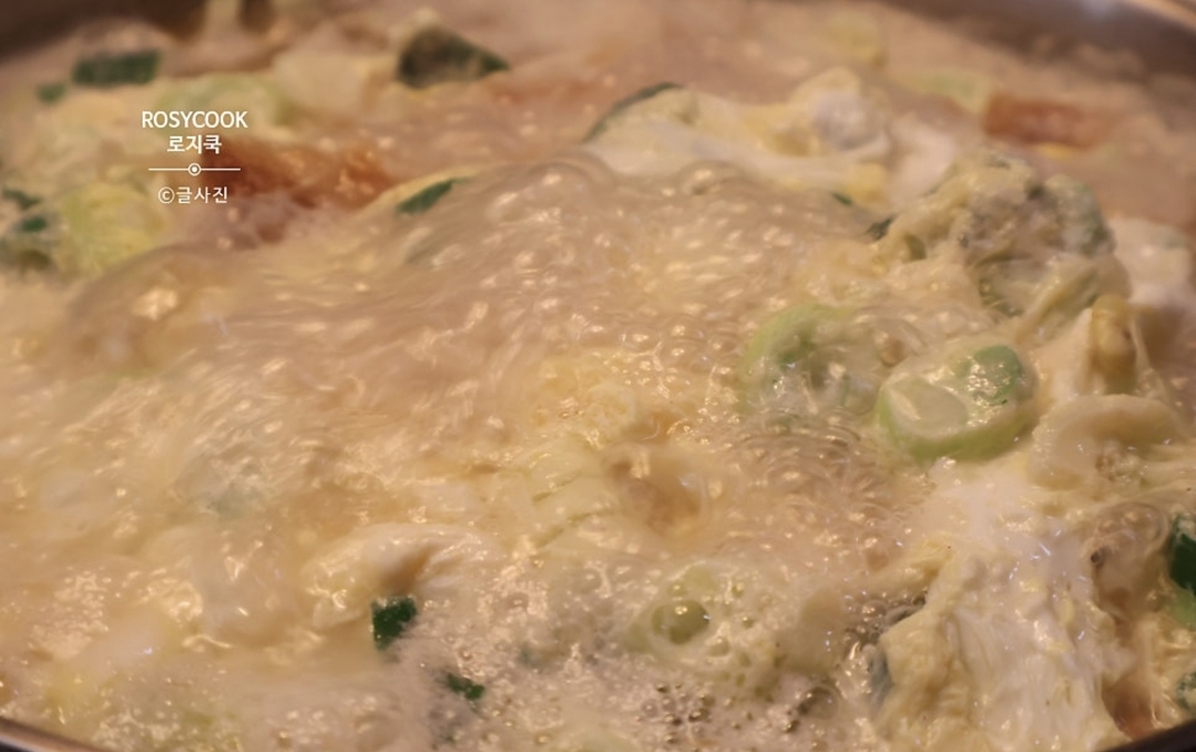11. 우선 남은 물의 반만 부어서 끓여주고 뚜껑을 덮고 끓여줍니다.