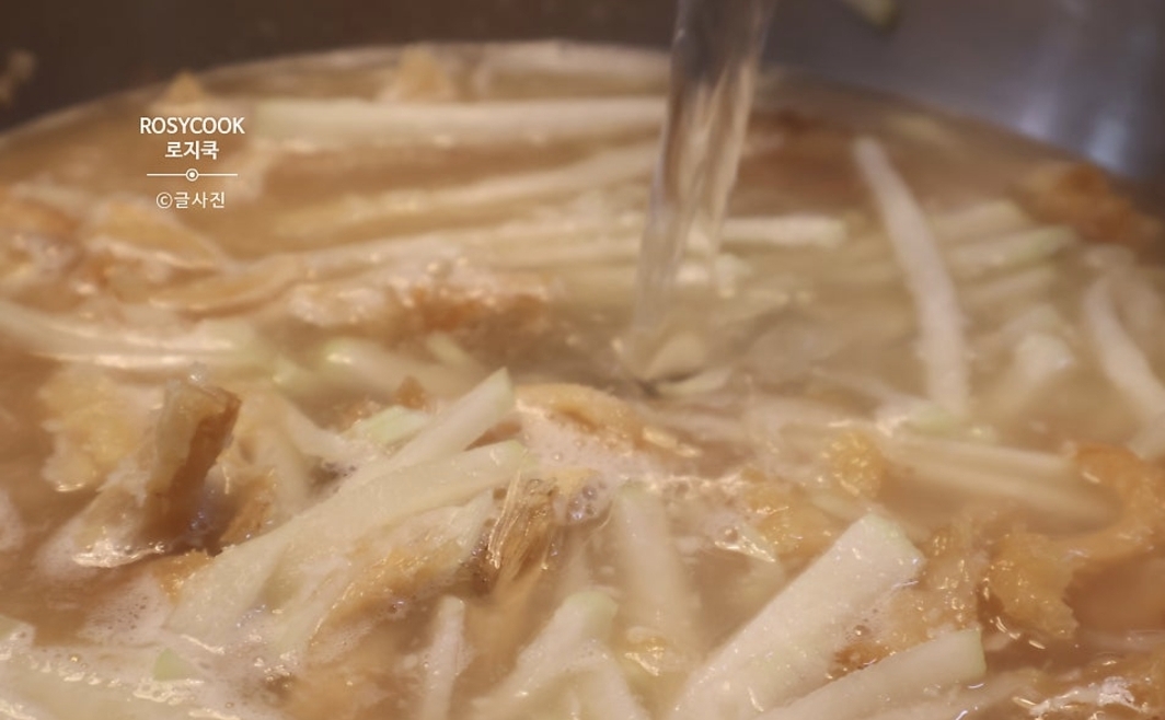 12. 어느 정도 국물이 뽀얗게 우러나면, 나머지 물을 부어줍니다.
