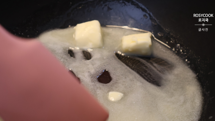 팬에 무염버터를 넉넉하게 두르고 녹여주세요.