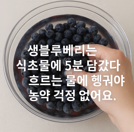 생블루베리는 식초물에 5분 담갔다가 흐르는 물에 헹궈야 농약 걱정 없어요.