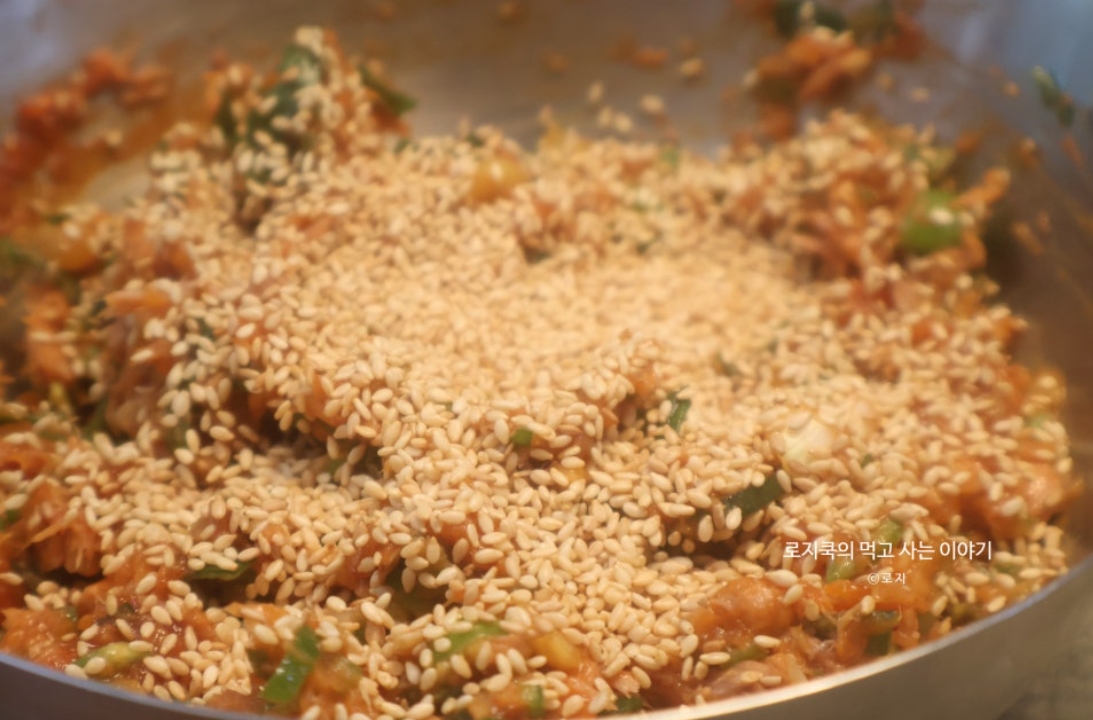 8. 깨를 전체적으로 뿌려서 다시 버무려 마무리해줍니다.