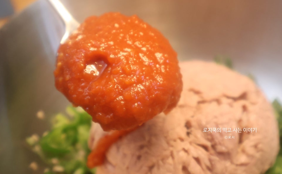 13. 풍자쌈장 참치쌈장을 취향껏 올려줍니다.