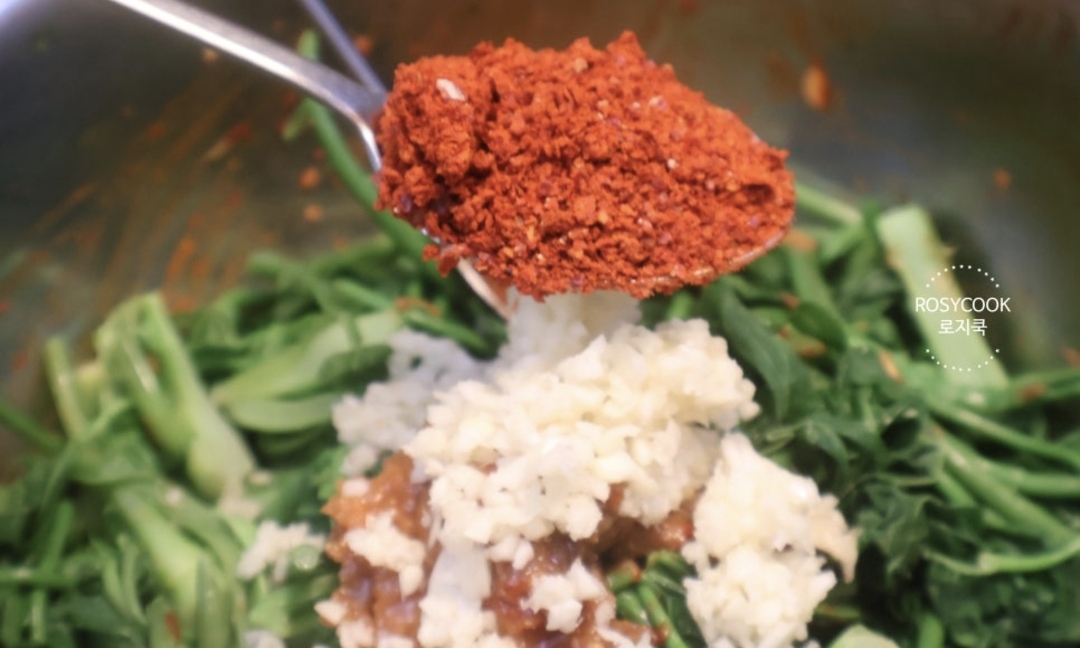 9. 고춧가루 1 큰 술을 넣어주고 조물조물 무쳐줍니다.