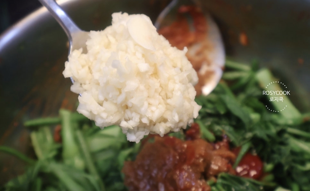 8. 매실청 2 큰 술, 간 마늘 1 큰 술을 넣어줍니다.